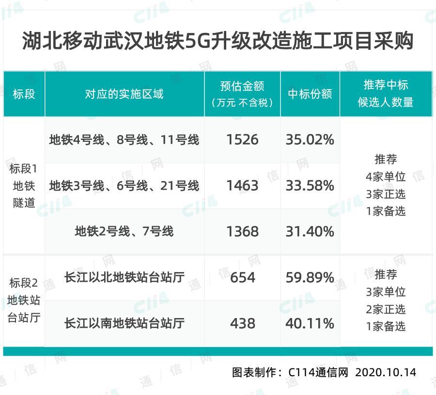 湖北移动武汉地铁5G升级改造,中铁、华为等4家中标